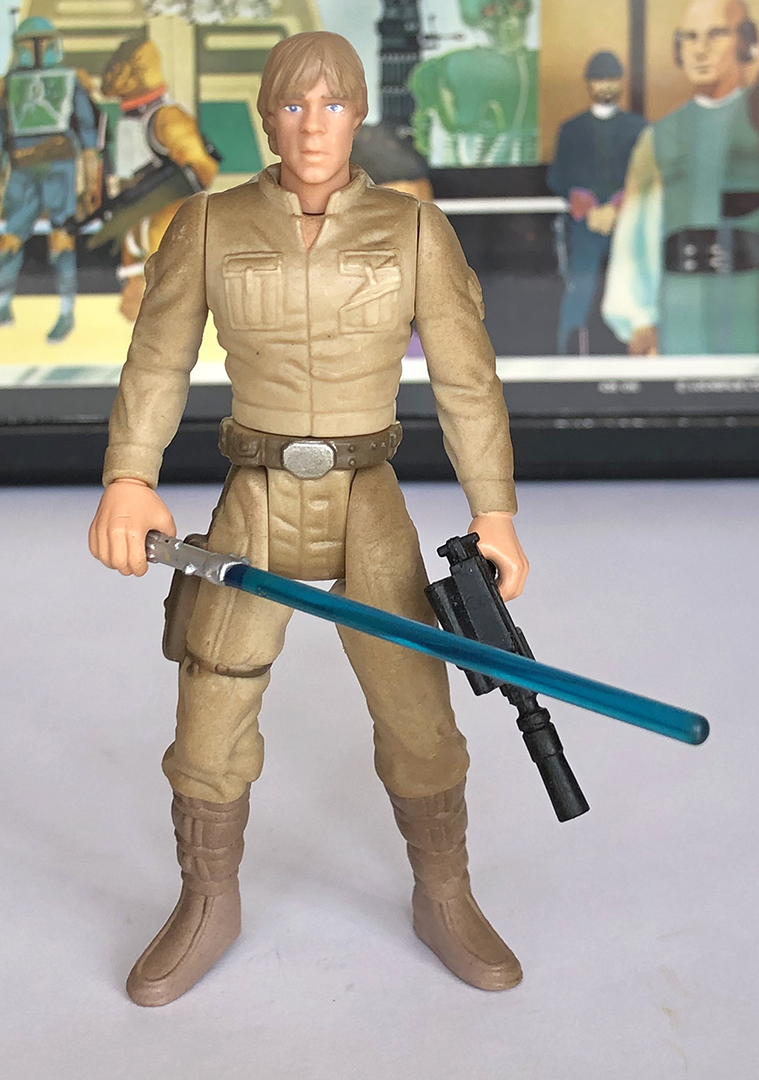 This loose Star Wars Power of the Force 2 Luke Skywalker Bespin attire action figure comes complete with his lightsaber and blaster. He is in excellent condition with tight joints and no play or paint wear.