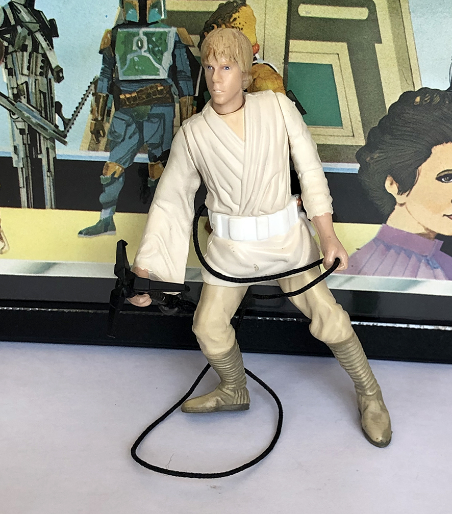 This Star Wars Power of the Jedi Luke Skywalker 25th Anniversary action figure is loose and comes complete with his grappling hook. He is in excellent condition with tight joints and no play or paint wear.